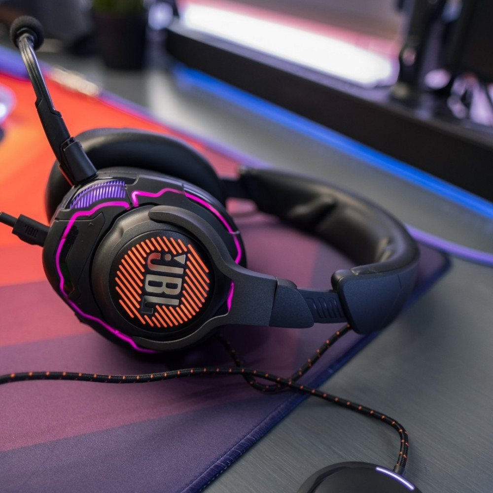 - تم تصميم المعايرة المخصصة لخوارزمية JBL مع مستشعر تتبع الرأس المدمج والميكروفون الجانبي حصريًا لـ JBL Quantum ONE