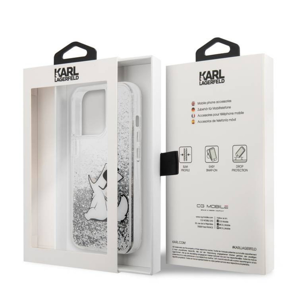كفر حماية كارل لاقرفيلد البريق السائل أيفون 13 برو ماكس - سلفر