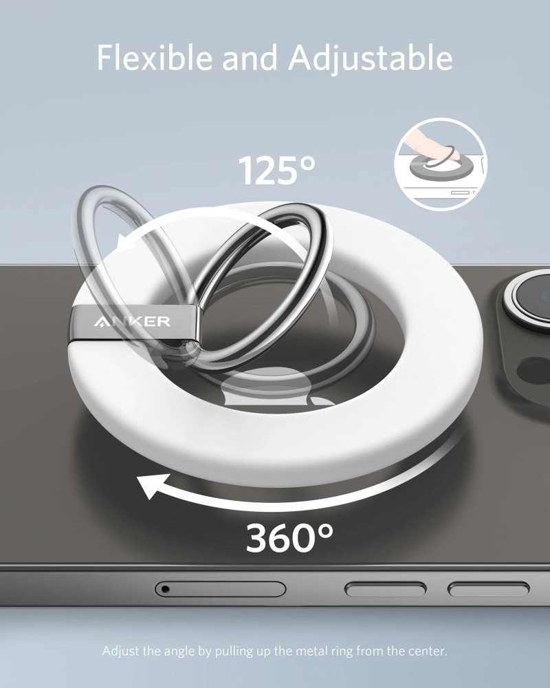الزاوية اليمنى ،قم بتدوير حامل الخاتم بسهولة 360 درجة واقلبه حتى 125 درجة للحصول على قبضة مريحة أو أوضاع عرض مختلفة عند وضعه على سطح الطاولة.